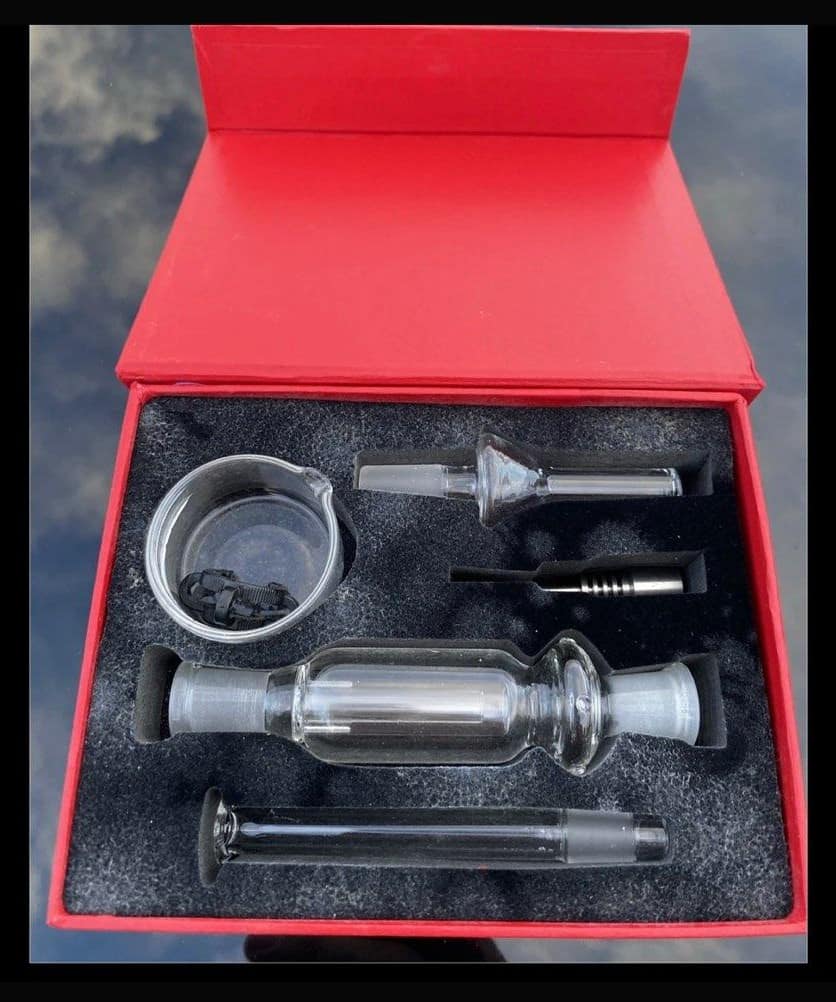 Made of titanium and glass. Comes with everything you need in a small box that’s easy to take everywhere!